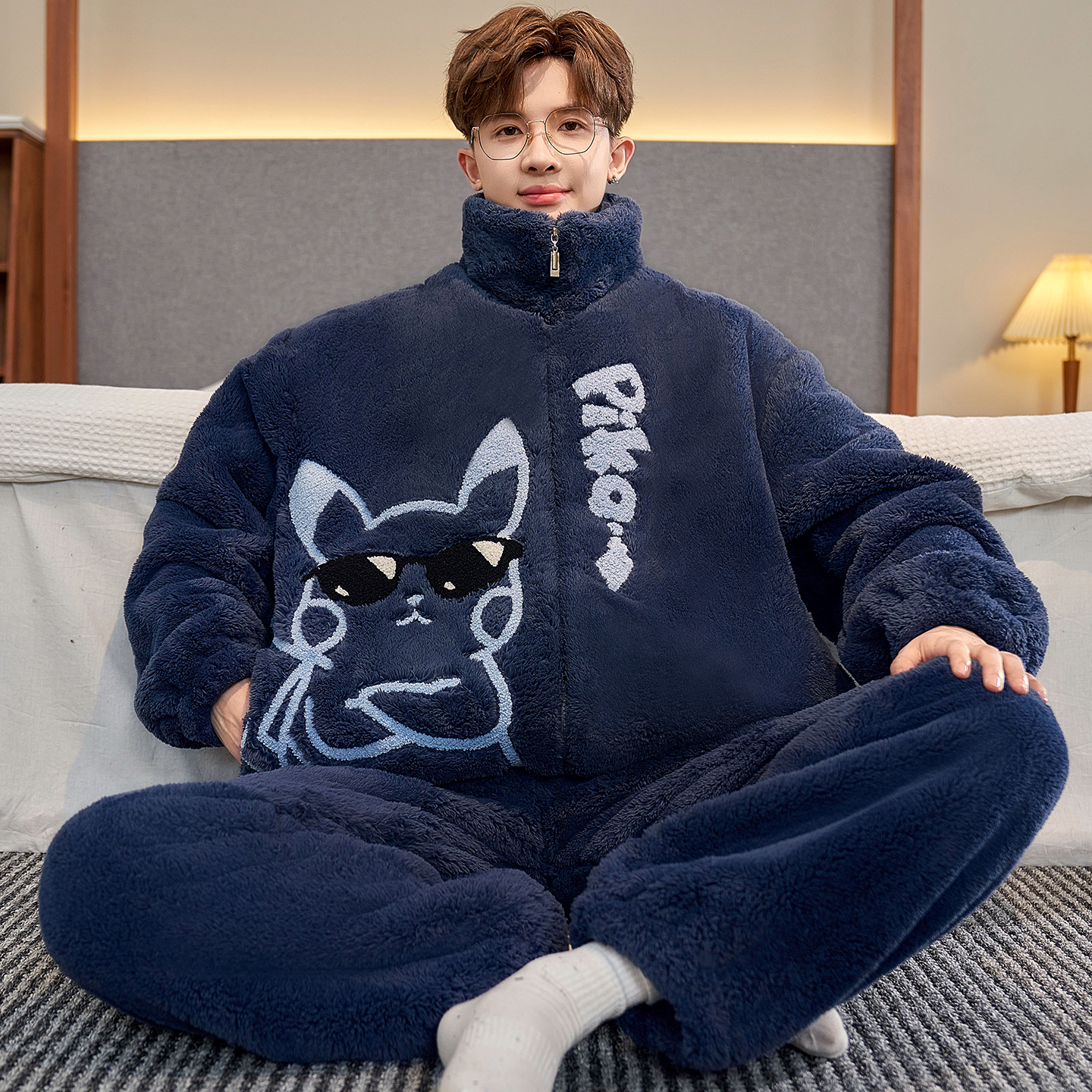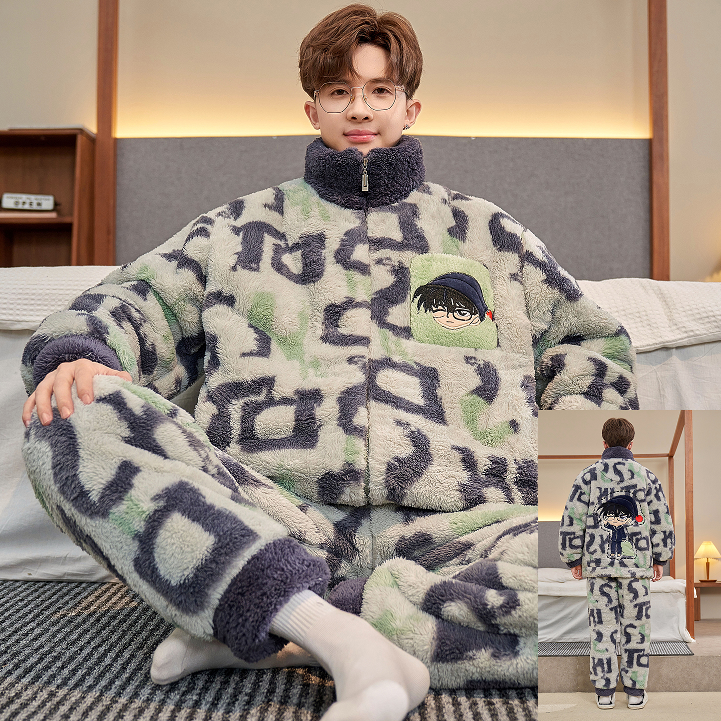 家居服套装 2025新款 加绒加厚冬天青少年男款 秋冬季 珊瑚绒睡衣男士