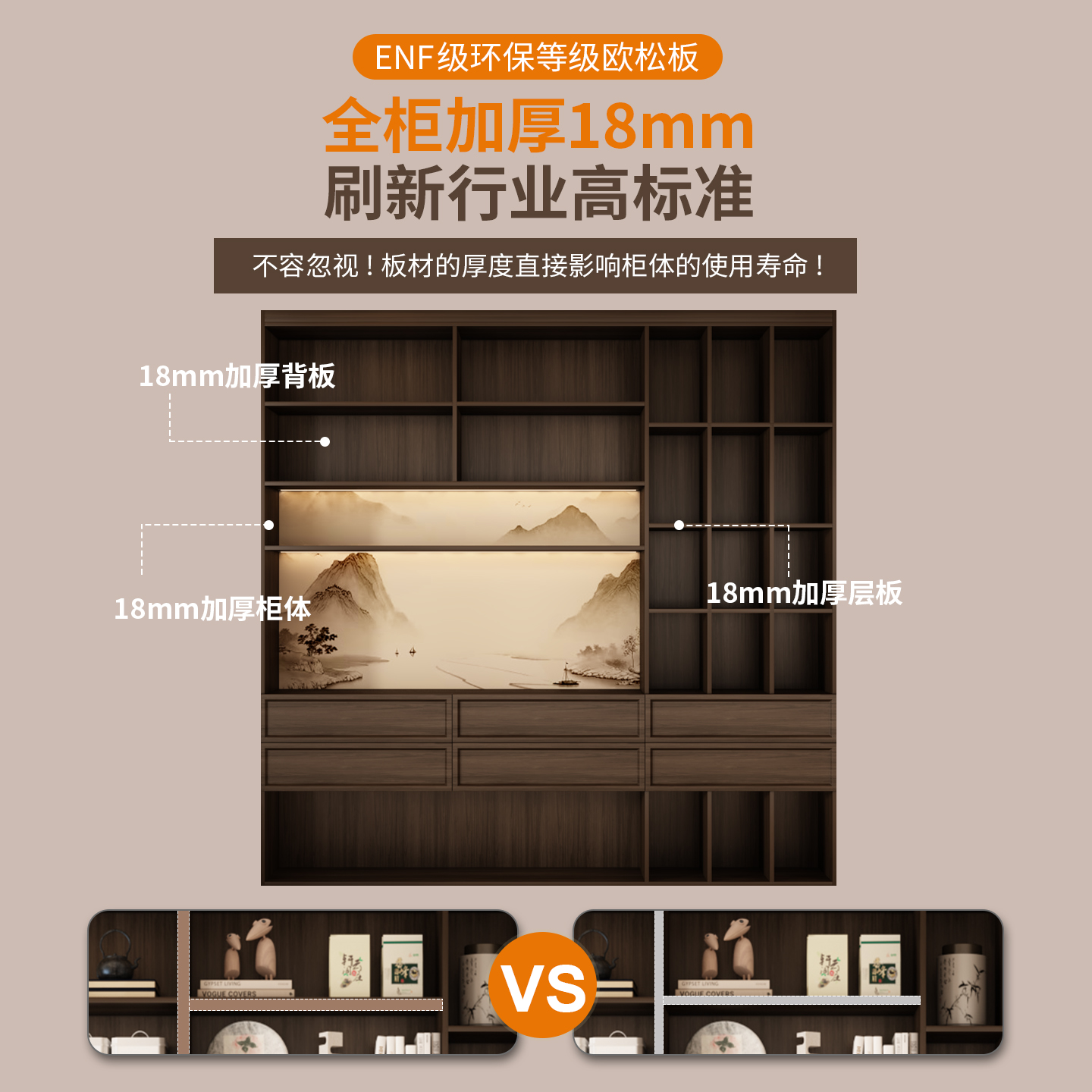 去客厅化书柜一体整墙新中式 实木展示柜家用书房中古柜子定制尺寸
