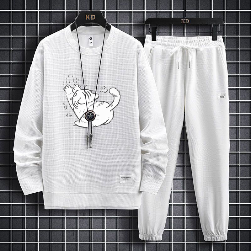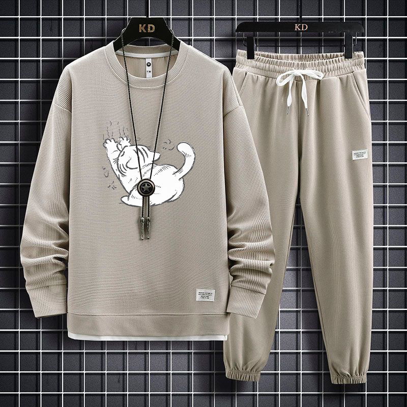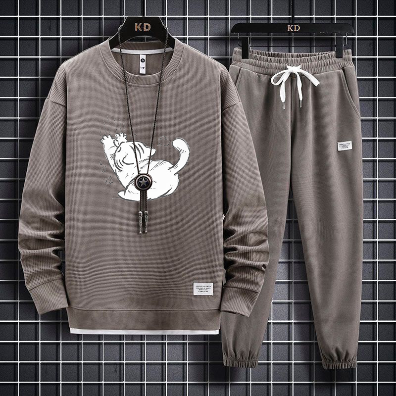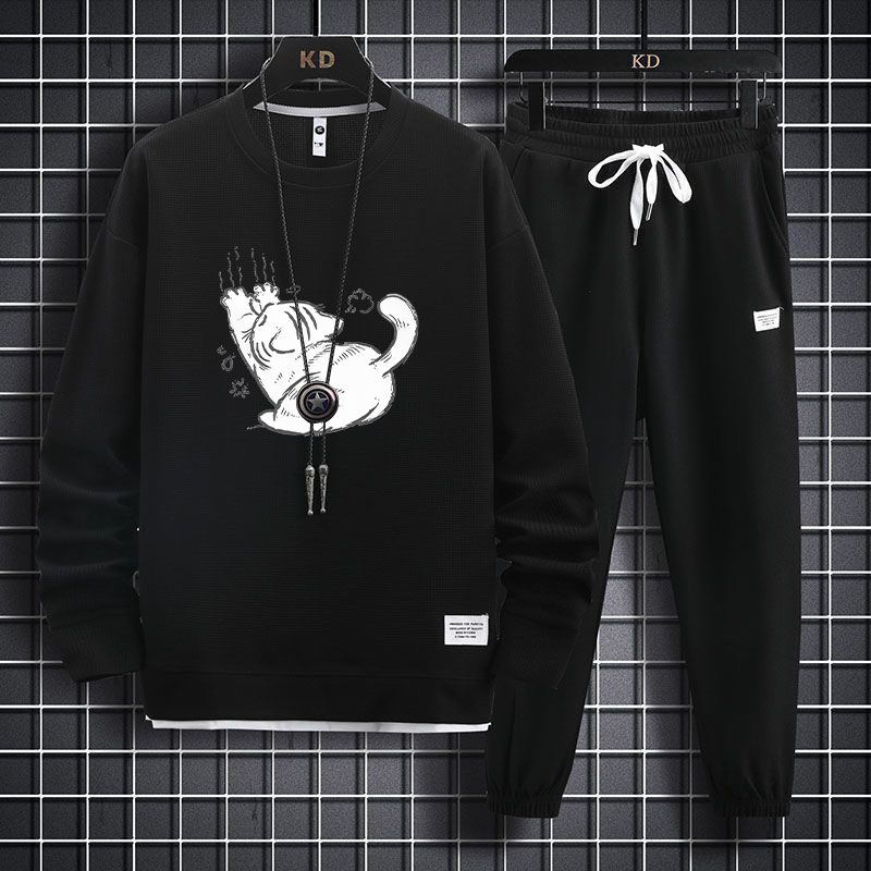 大码 男春秋胖子百搭加肥加大休闲宽松一整套穿搭运动服潮 卫衣套装