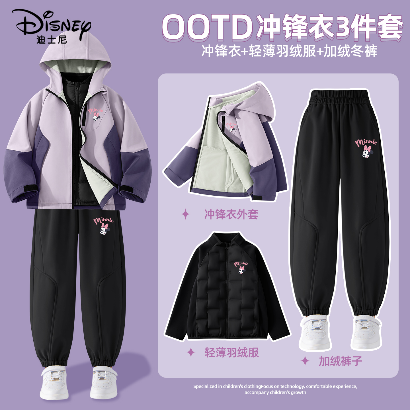 子 大童女孩冲锋衣羽绒内胆儿童加绒裤 迪士尼女童套装 秋冬2025新款