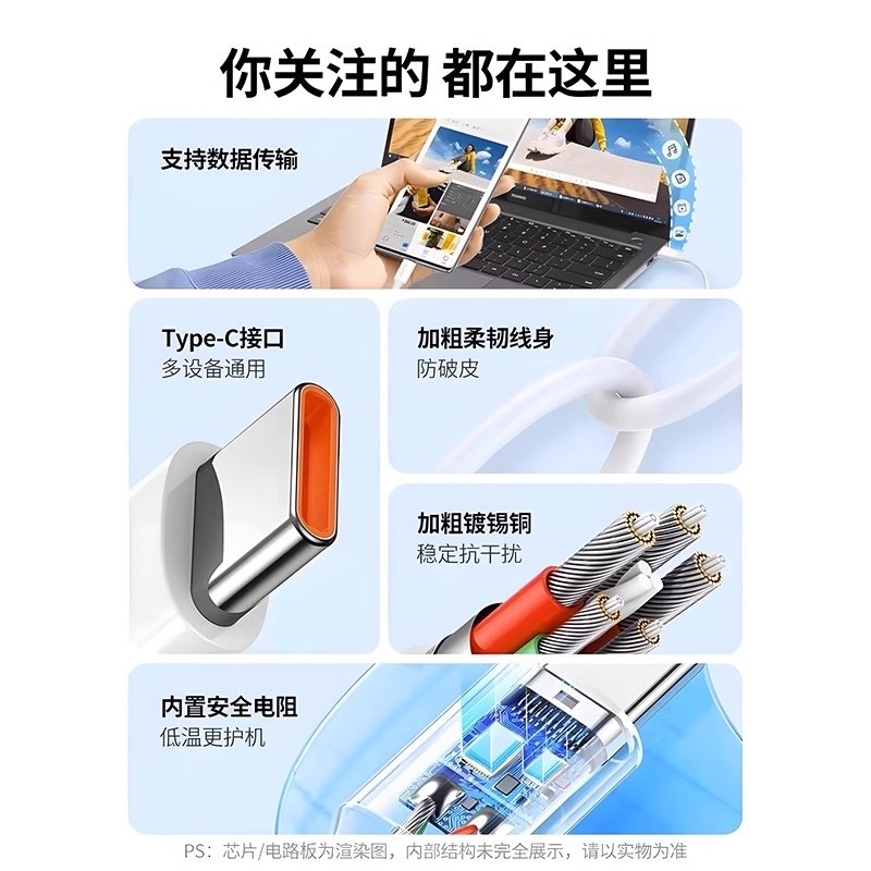 4Pro充电器线67瓦超级快充Typec手机原装 6平板Pad5Pro2米加长 适用小米Civi数据线55W极速闪充Civi1S