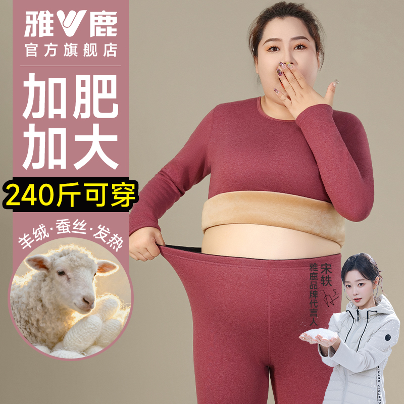 胖mm冬季 雅鹿保暖内衣女士加肥加大码 孕妇款 加厚加绒套装 秋衣秋裤