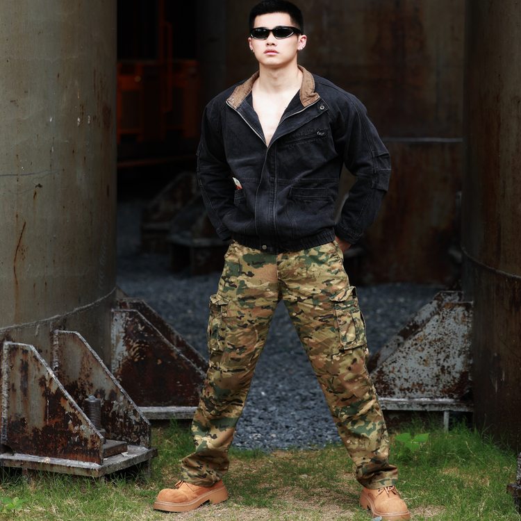复古宽松迷街头伐木宽松直筒战术休闲长裤 裤 迷彩工装 教官军迷美式