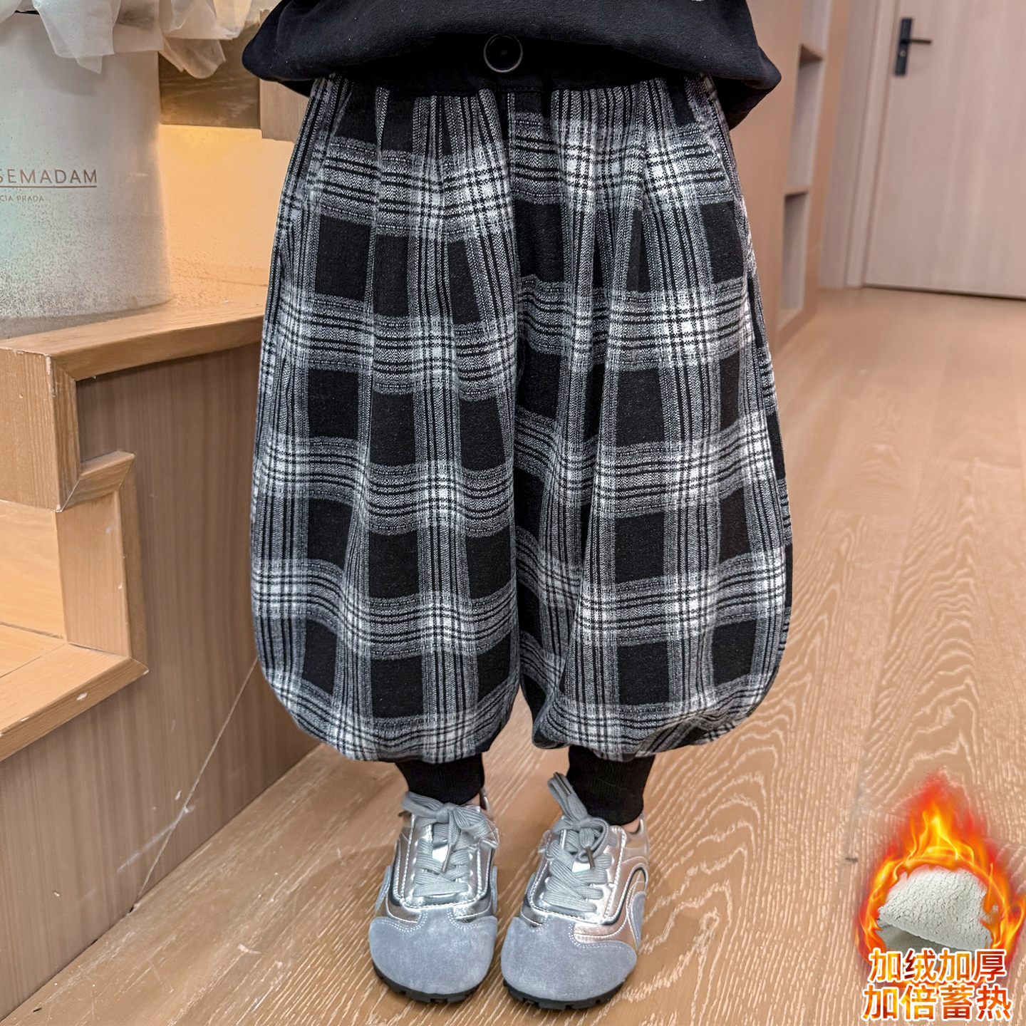 直筒小个子毛呢阔腿裤 人字纹加厚加绒裤 高腰窄版 2024新款 子女冬季