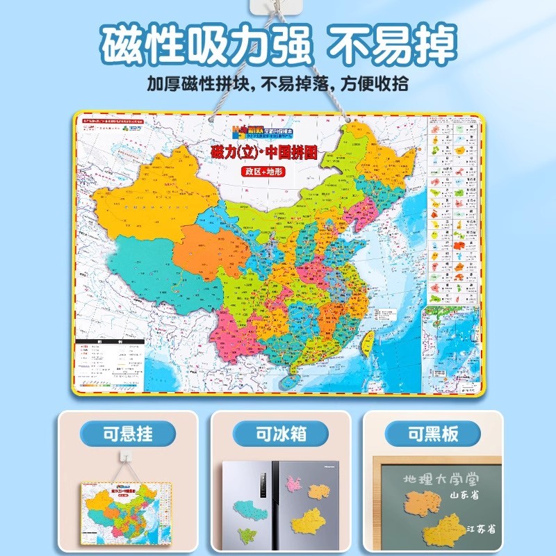 中国地图磁力拼图初中生专用世界地理儿童2025新版 3d立体超大初二