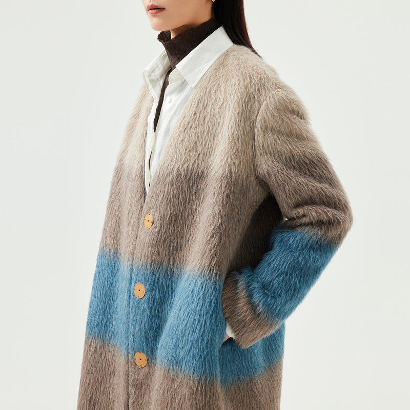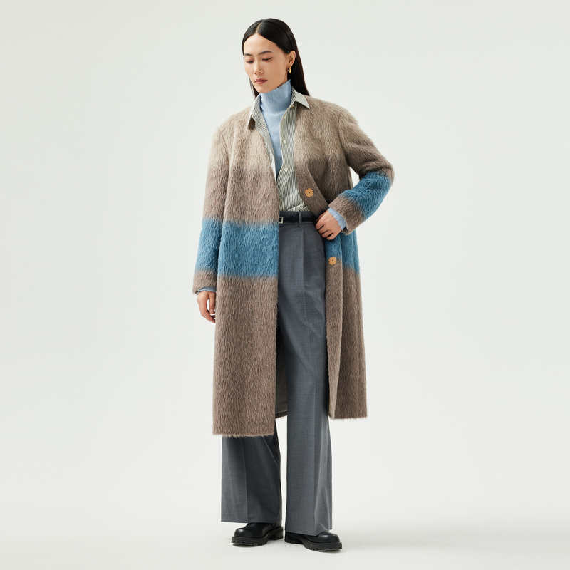 RUISHI芮时 重磅驼绒桑蚕丝羊毛慵懒两穿领毛呢大衣女秋冬外套女
