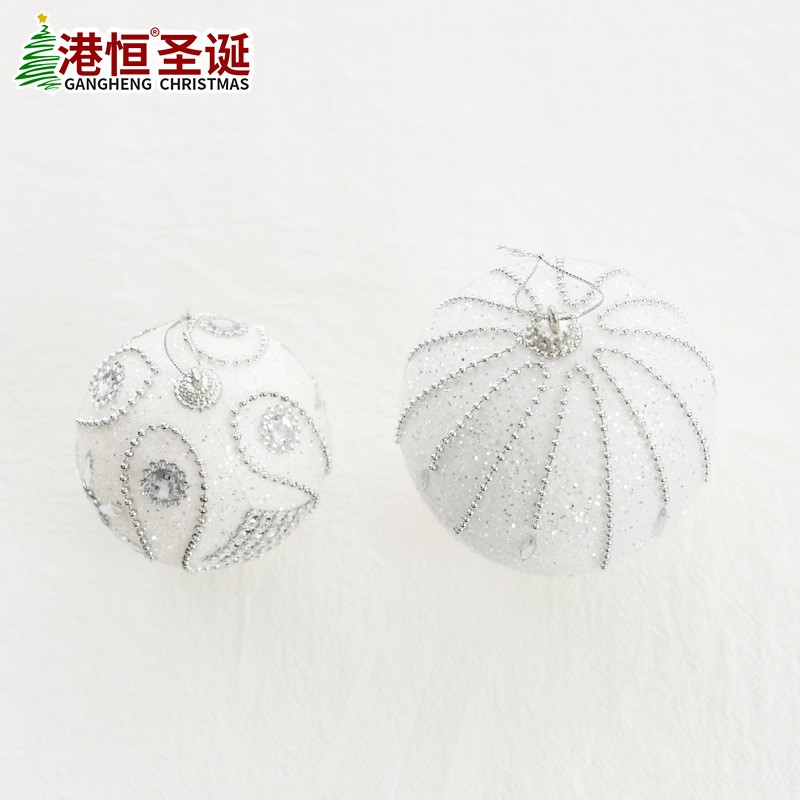 8cm圣诞球白色泡沫吊球雪球雪景婚礼布置道具圣诞树挂件装 饰定制