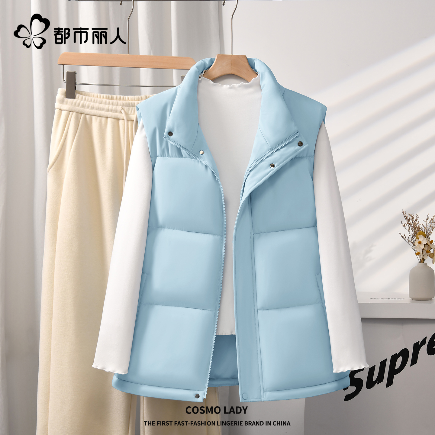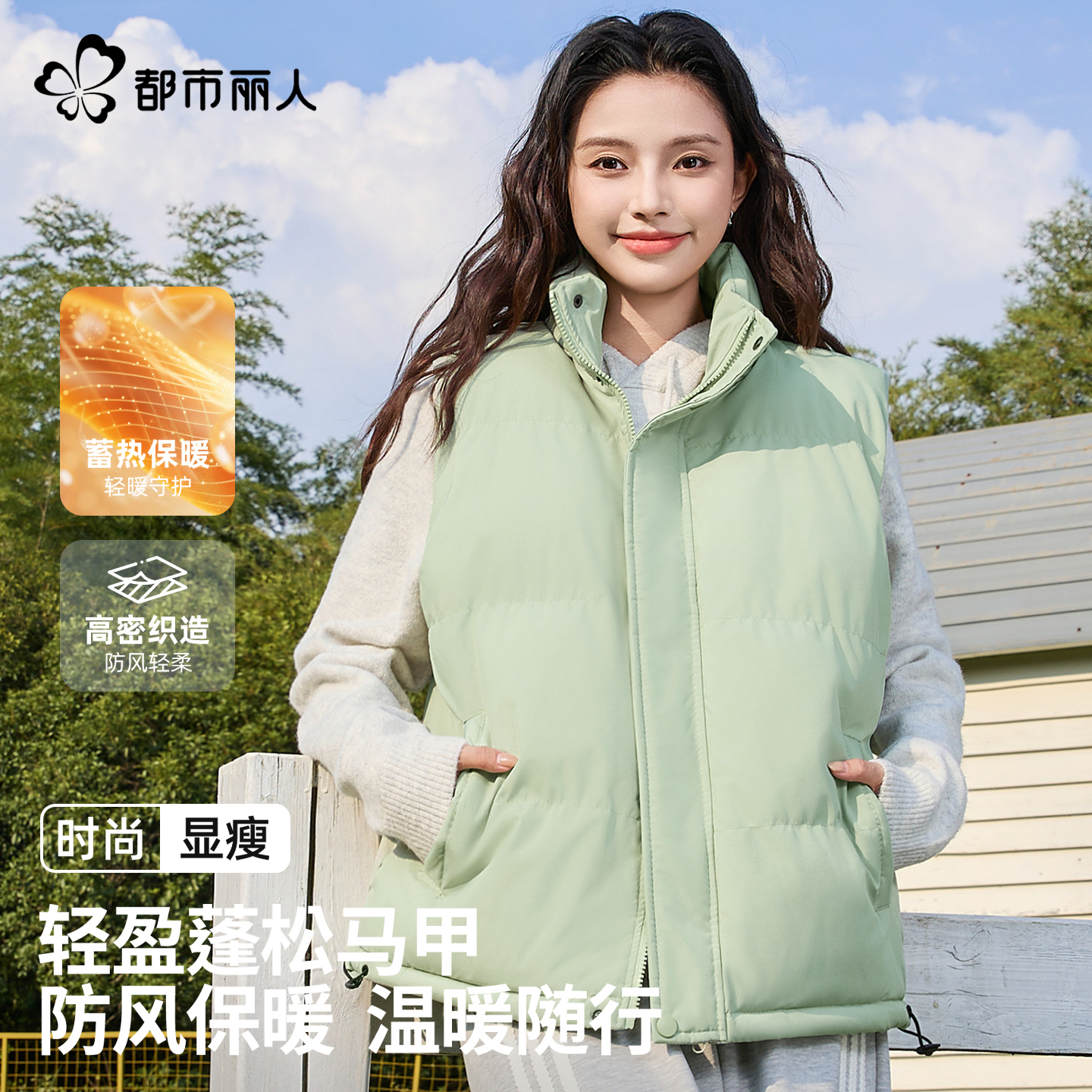 棉马夹女秋冬新款 坎肩外套 加厚棉背心可拆帽羽绒棉背心休闲大码