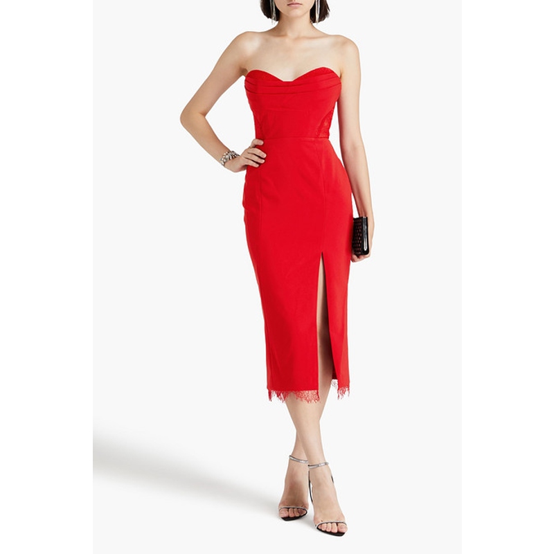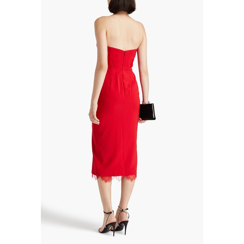 迷衣时尚 Marchesa 抹胸蕾丝边褶裥绉纱中长连衣裙 女士 Notte