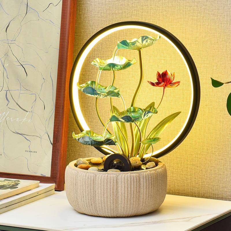 现代简约流水摆件循环水风水轮招财客厅生财办公桌乔迁开 业送礼