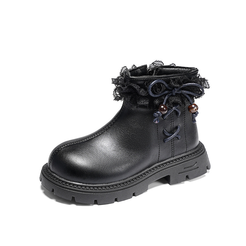 女童公主马丁靴2025秋冬新款 儿童软底单靴蝴蝶结女宝中大童皮靴