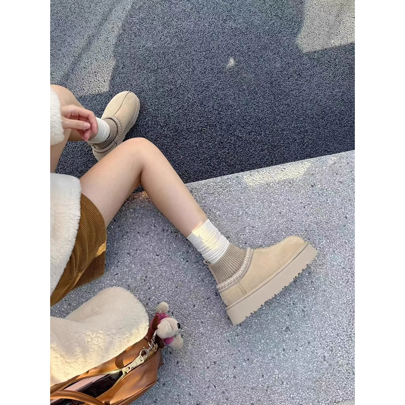 保暖懒人一脚蹬毛毛鞋 冬季 潮 雪地靴女款 羊皮毛一体厚底塔茨乐福鞋
