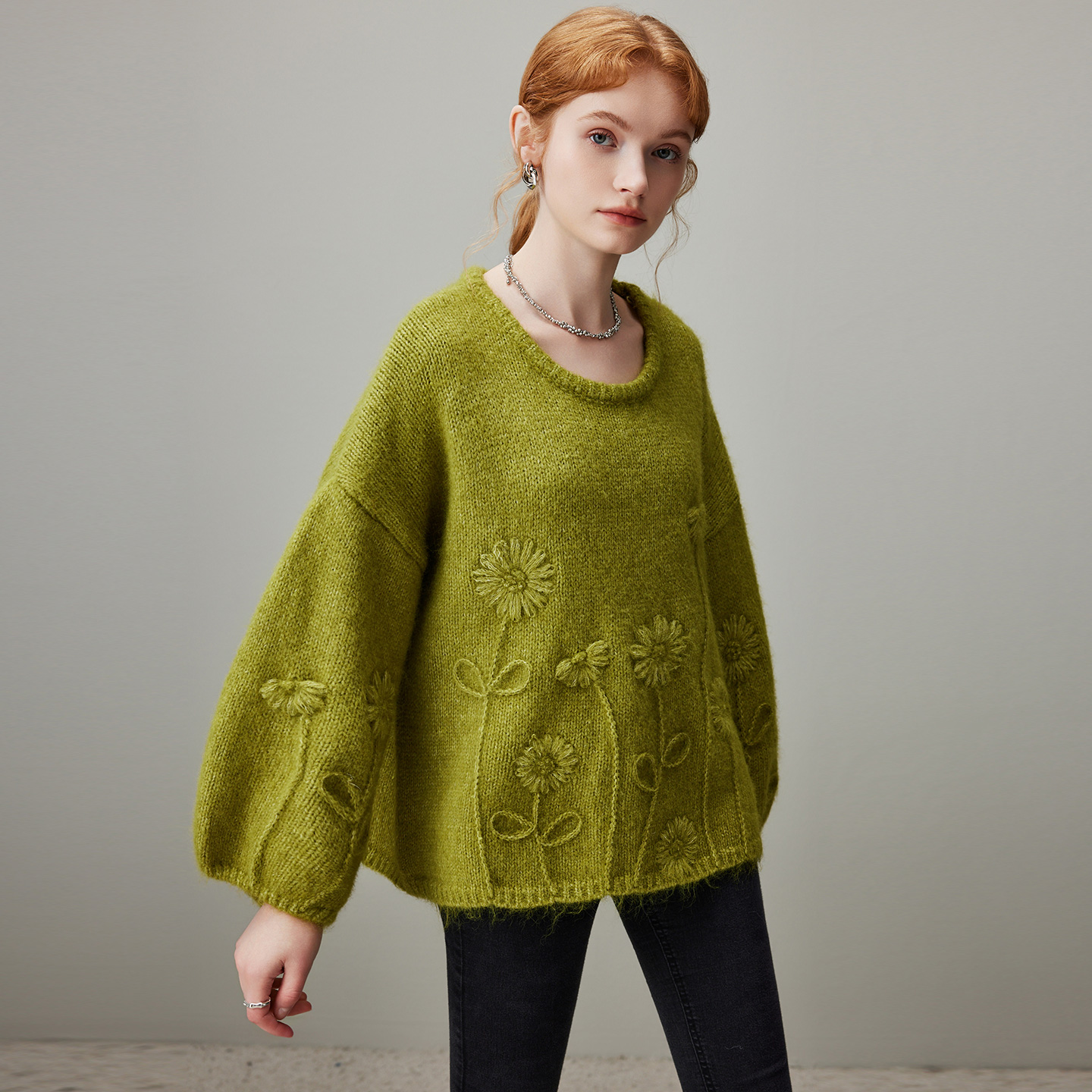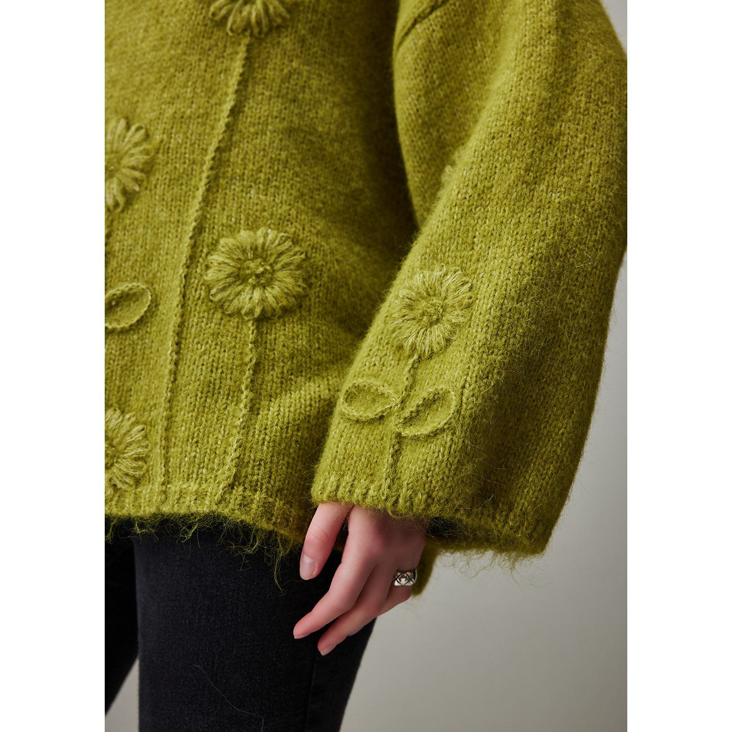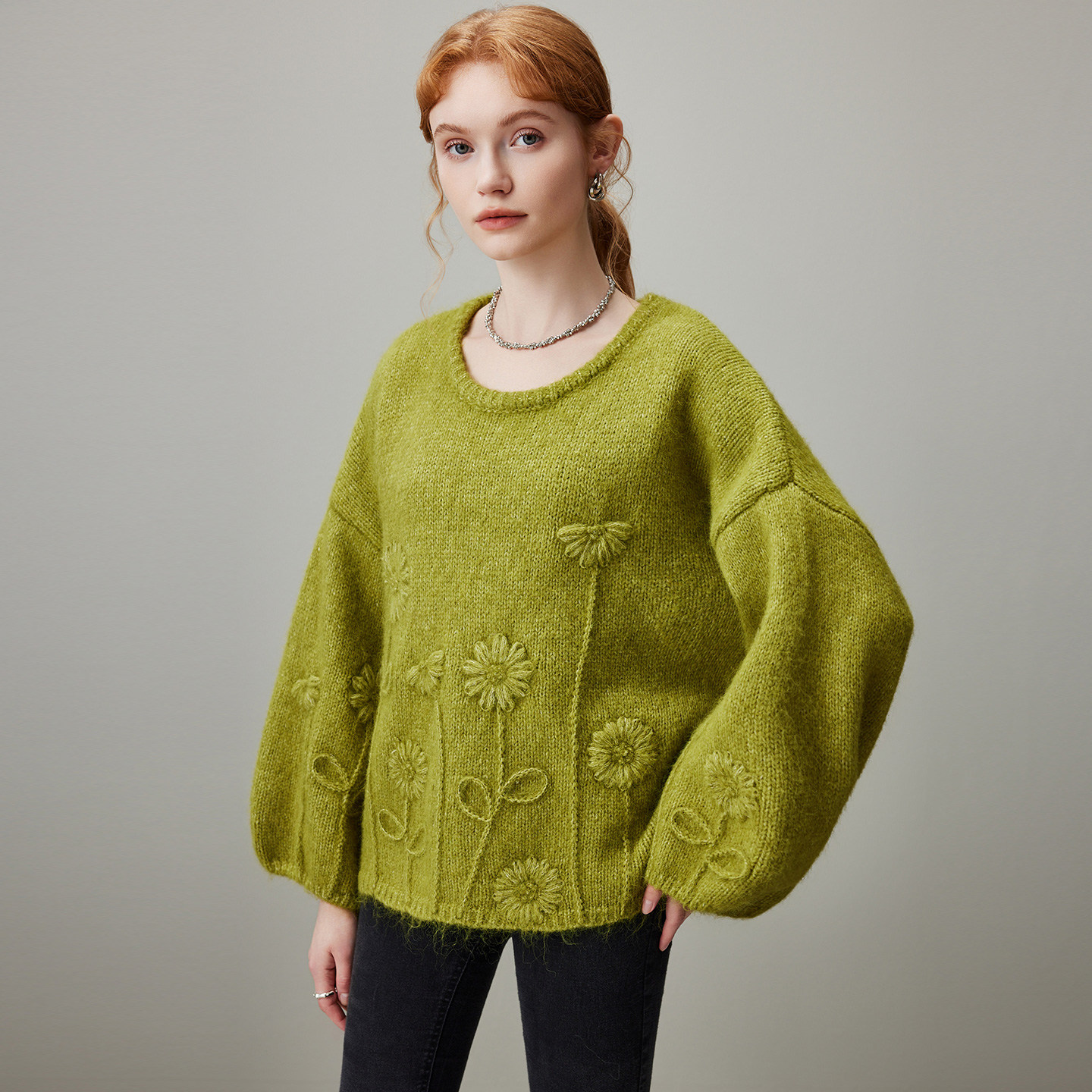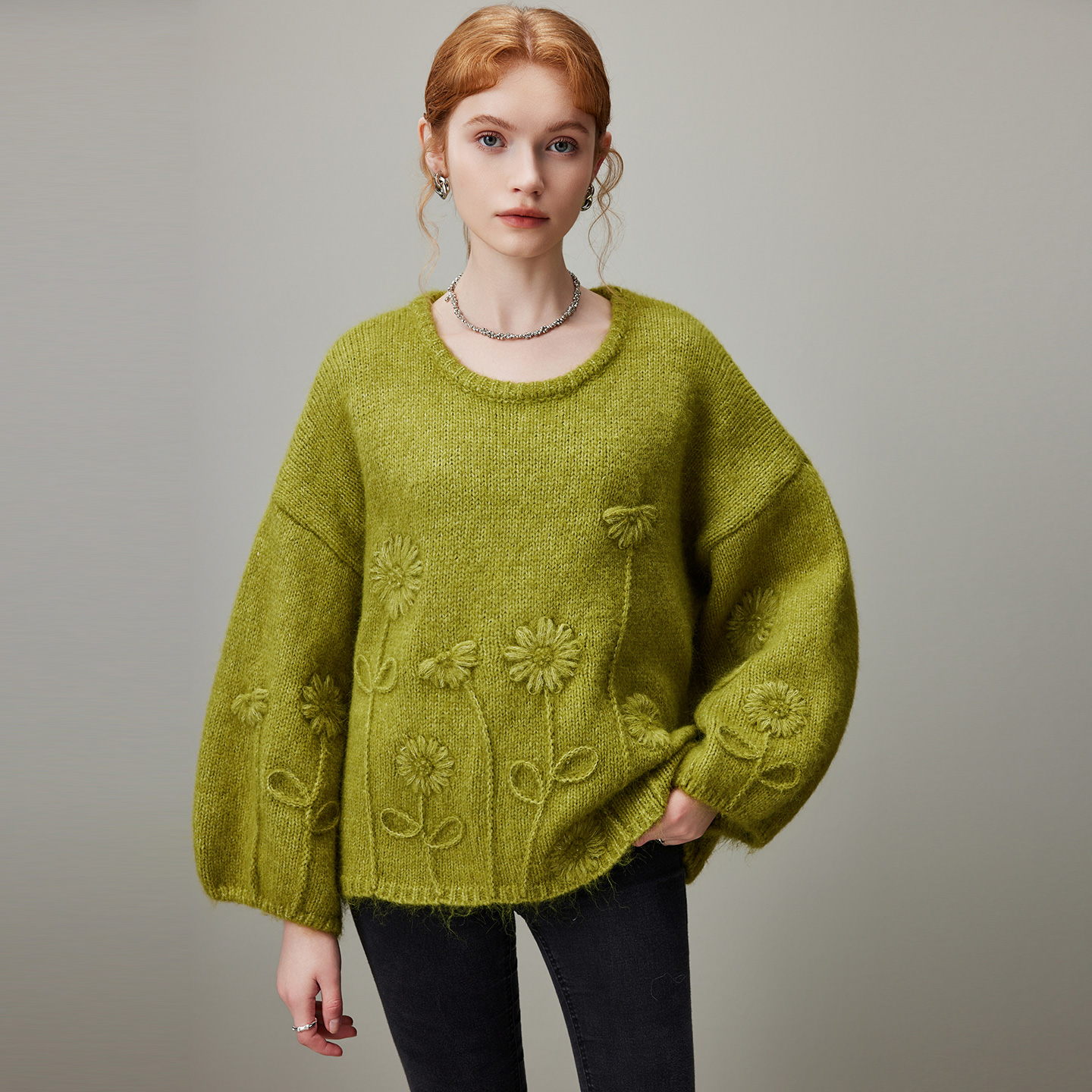 宽松立体钩花羊毛针织衫 新款 温柔软糯圆领毛衣2025年冬季 dfvc法式