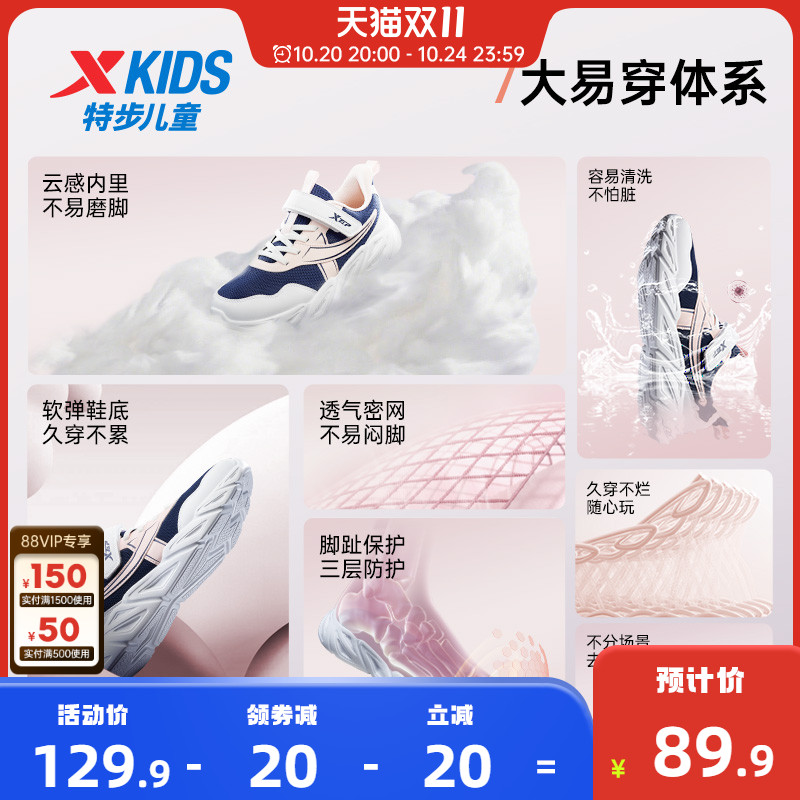 秋季 子大童魔术贴跑步鞋 新款 女童缓震轻便运动鞋 儿童跑鞋 特步童鞋
