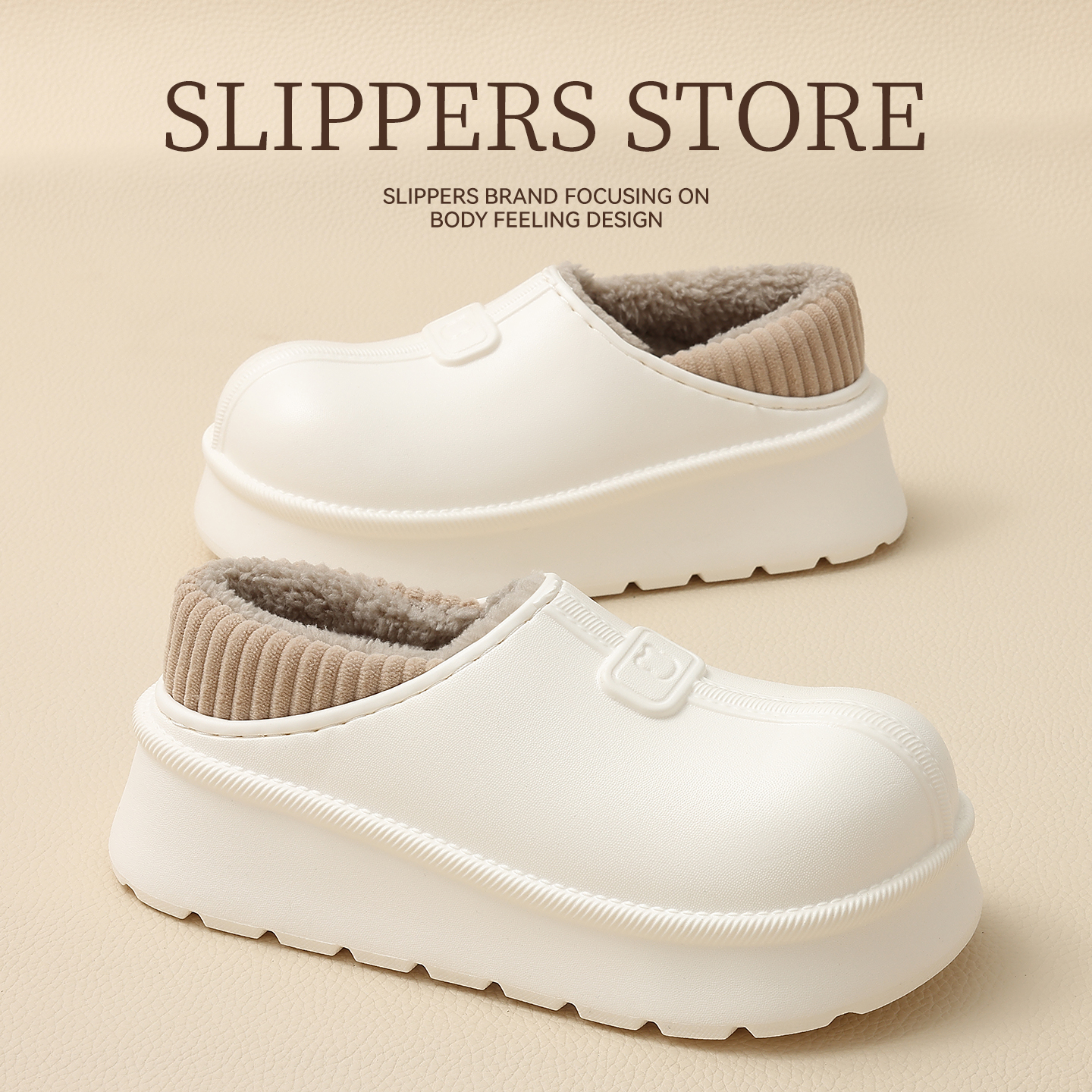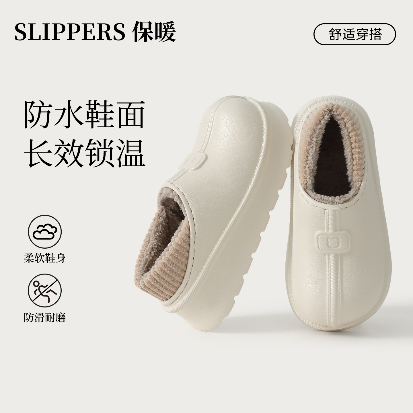 室内家居毛绒保暖棉鞋 防水棉拖鞋 包跟2025新款 秋冬季 女士外穿 女款
