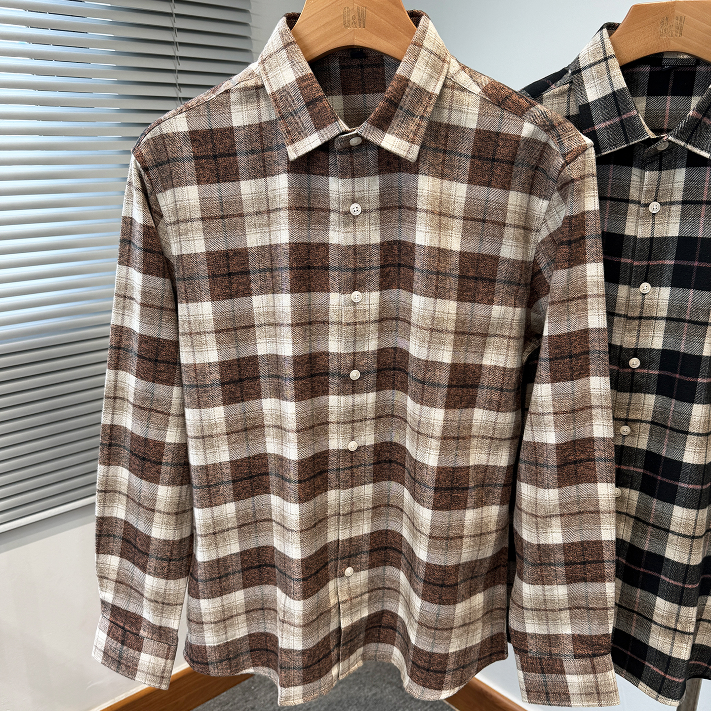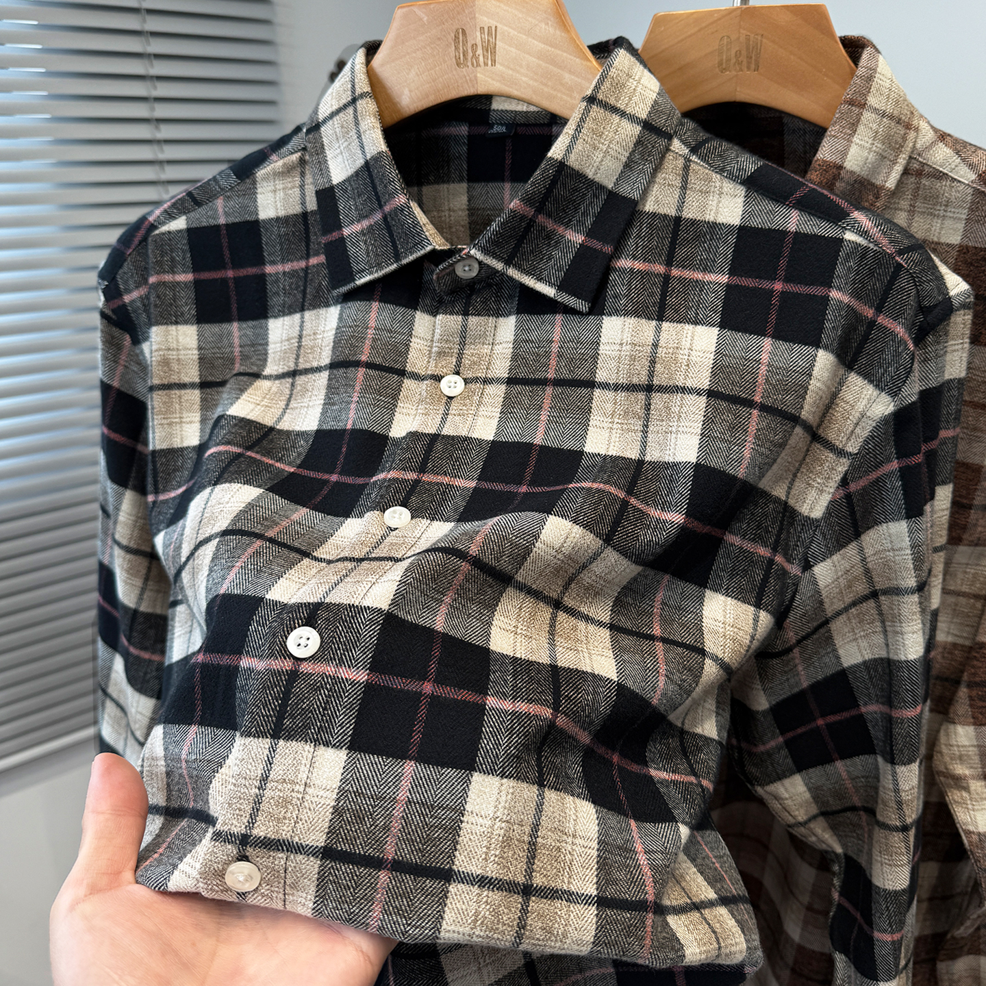 内搭寸衣 潮流休闲青年纯棉衬衣男加厚秋冬季 大格子磨毛衬衫 男长袖