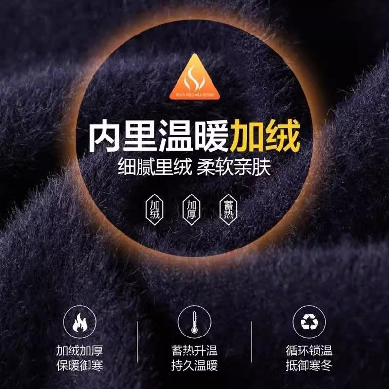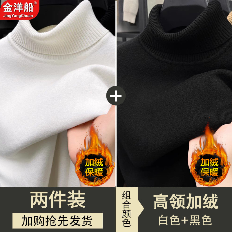 纯色加厚保暖针织打底毛线衫 一体绒加绒高领毛衣男爸爸新款 冬季