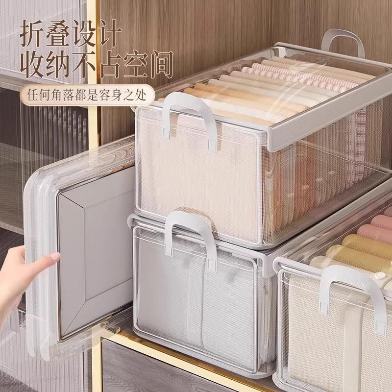 衣服收纳箱家用透明带盖整理盒衣柜分层神器放衣物裤 子折叠储物筐