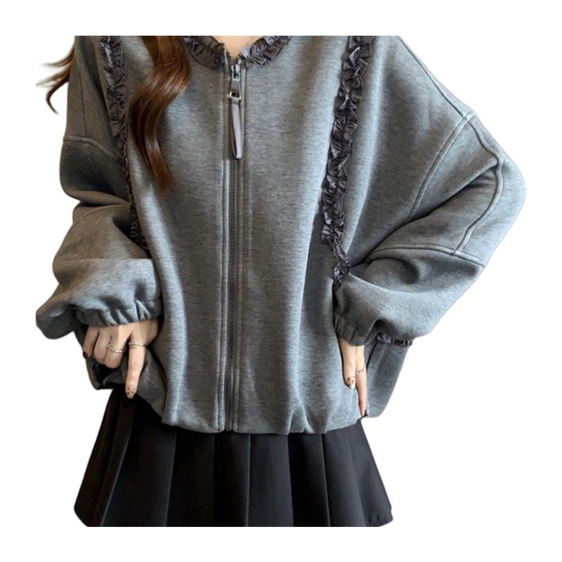 胖mm显瘦设计感木耳边短款 春秋2025大码 拉链夹克卫衣外套女款 新品