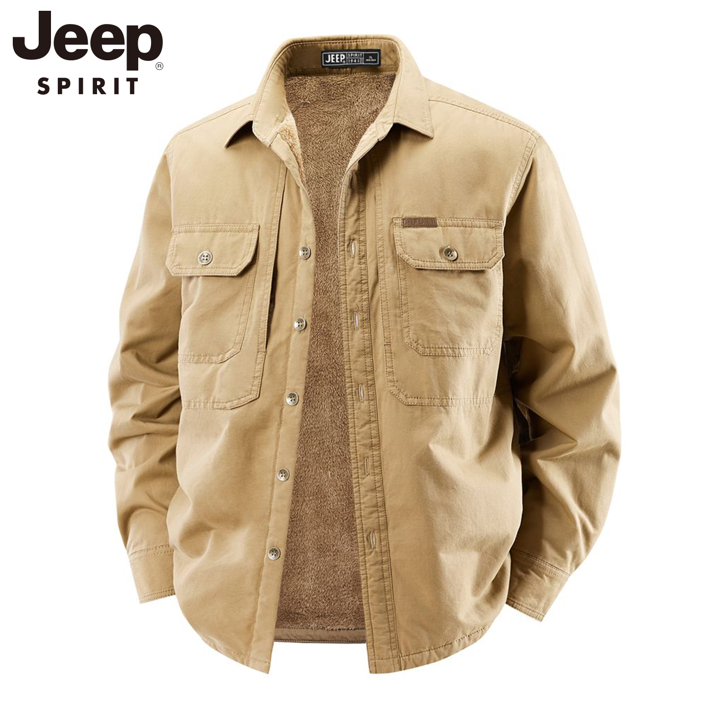 加厚保暖纯棉衬衣打底衫 JEEP吉普男士 2025秋冬新款 加绒衬衫 男 长袖