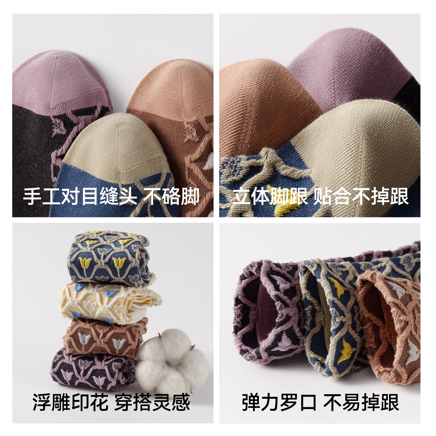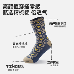 猫人浮雕郁金香袜子女士中筒袜2025新款 透气吸汗复古潮袜 秋冬季