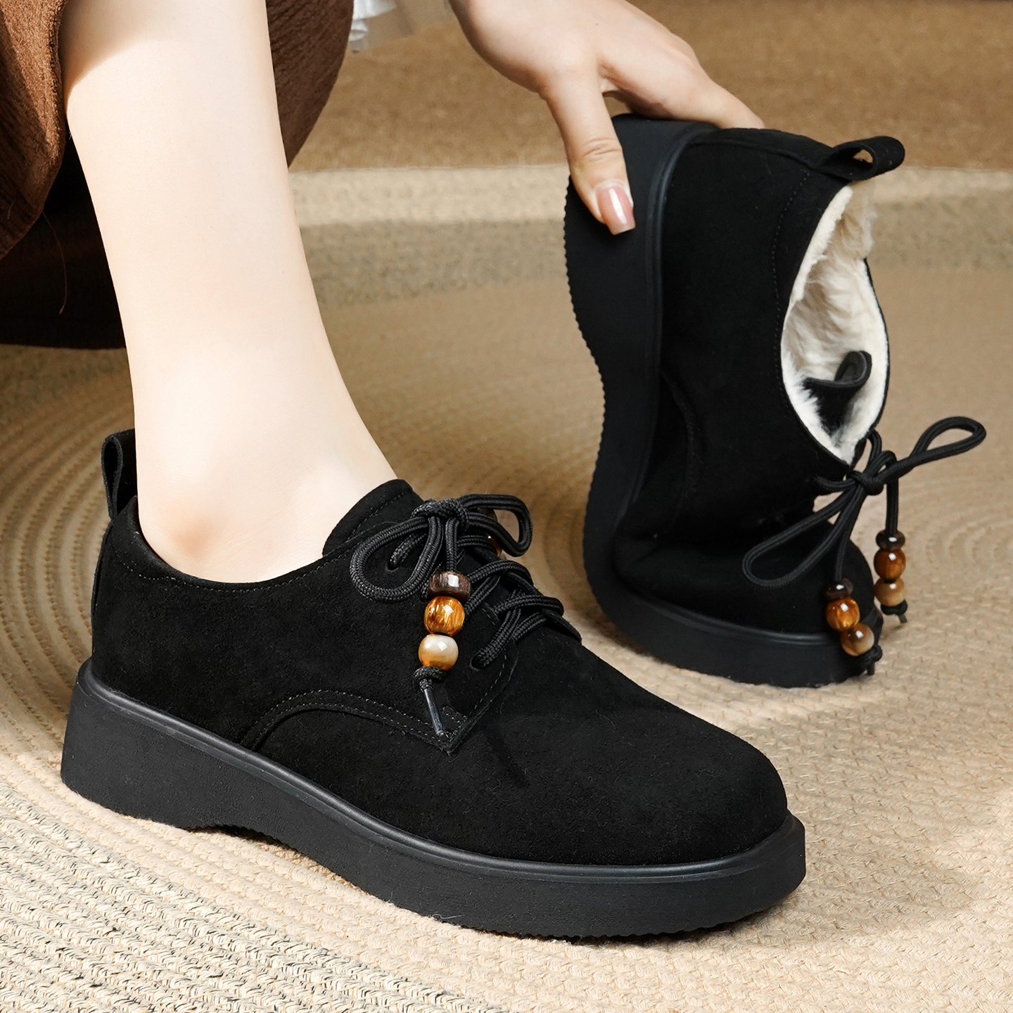 秋冬季 女鞋 小皮鞋 加绒保暖棉鞋 全包勃肯鞋 女真皮厚底单鞋 2025新款