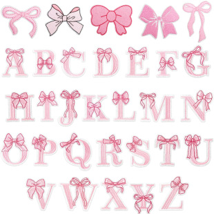 粉色蝴蝶结刺绣布贴26个蝴蝶结字母包包装 饰补丁贴字母章仔绣片熨