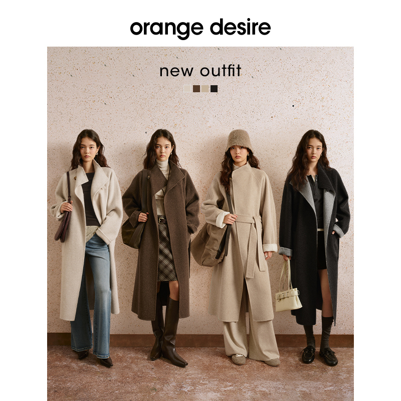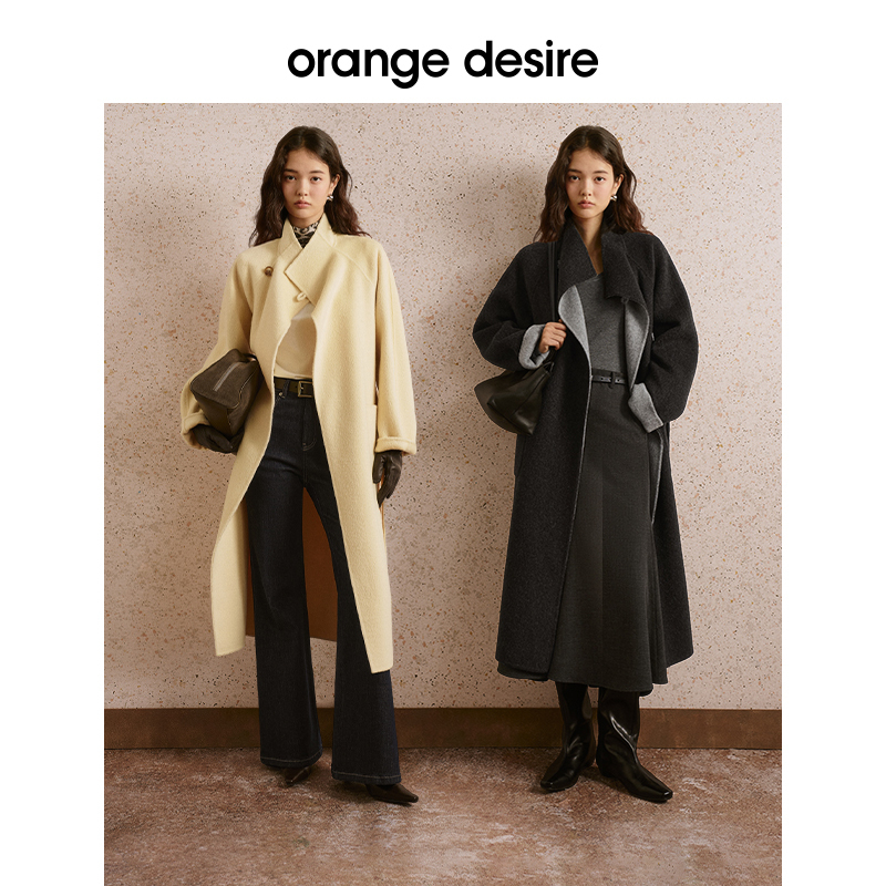 RUISHI芮时 重磅驼绒桑蚕丝羊毛慵懒两穿领毛呢大衣女秋冬外套女