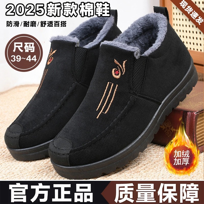 日常休闲中老年加厚软底轻便舒适防滑开车工作爸爸鞋 冬季 加绒棉鞋