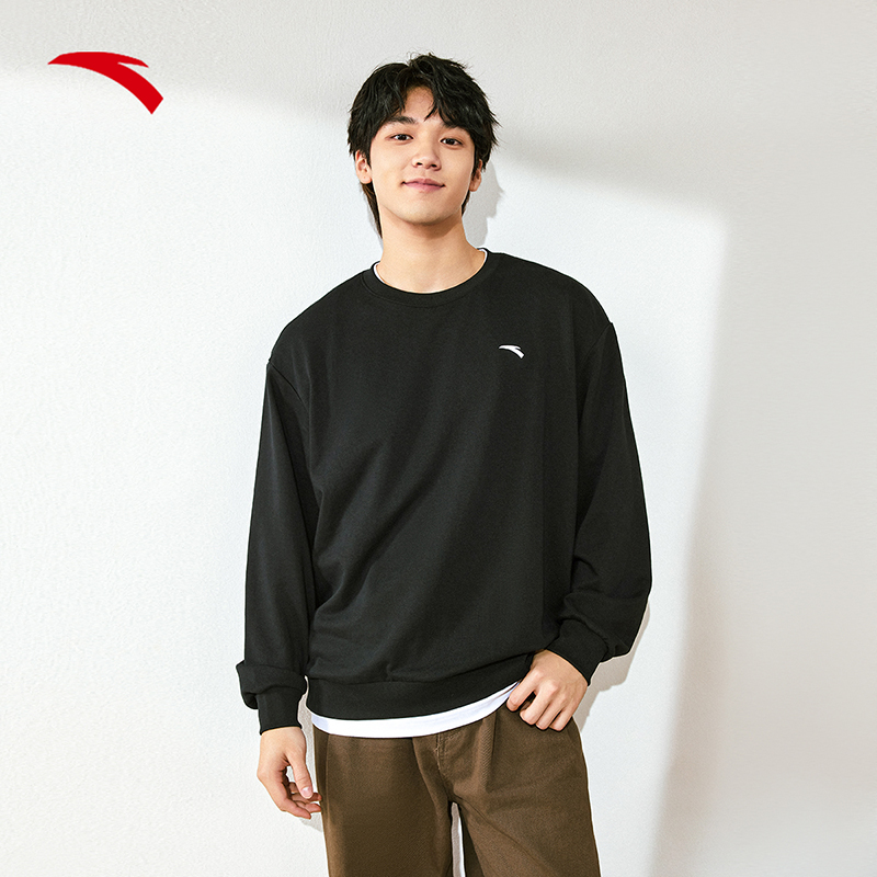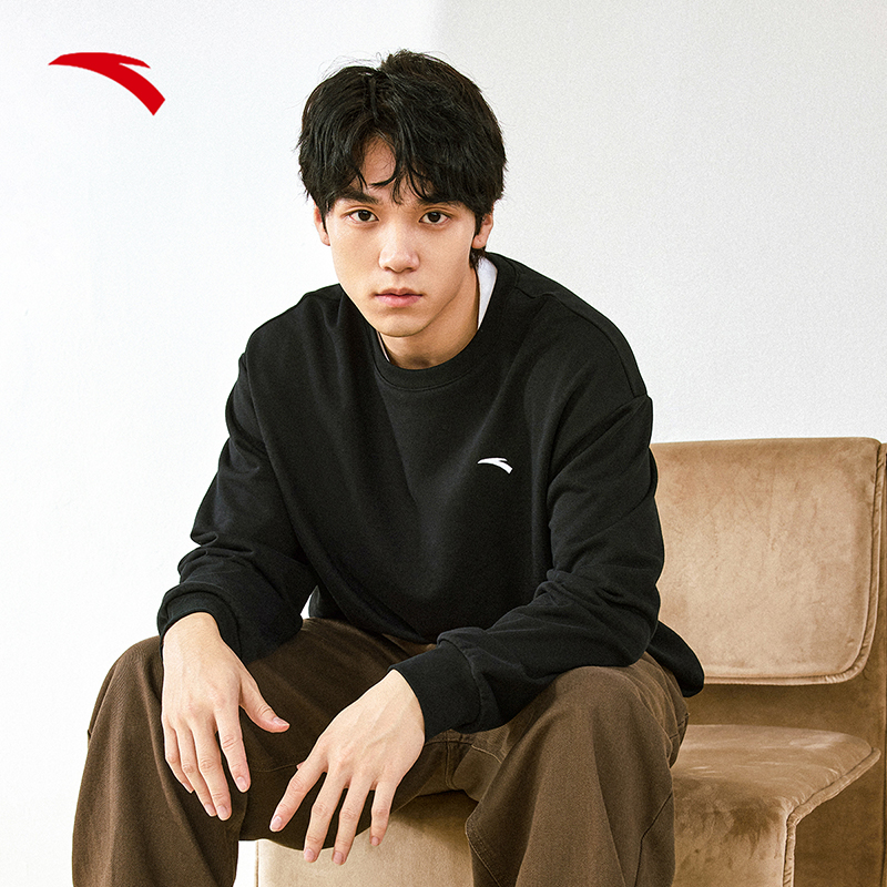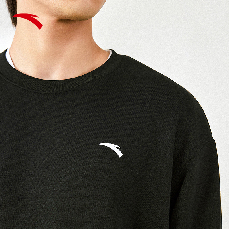 简约logo经典 新款 百搭套头圆领休闲运动上衣 2024冬季 安踏卫衣男款