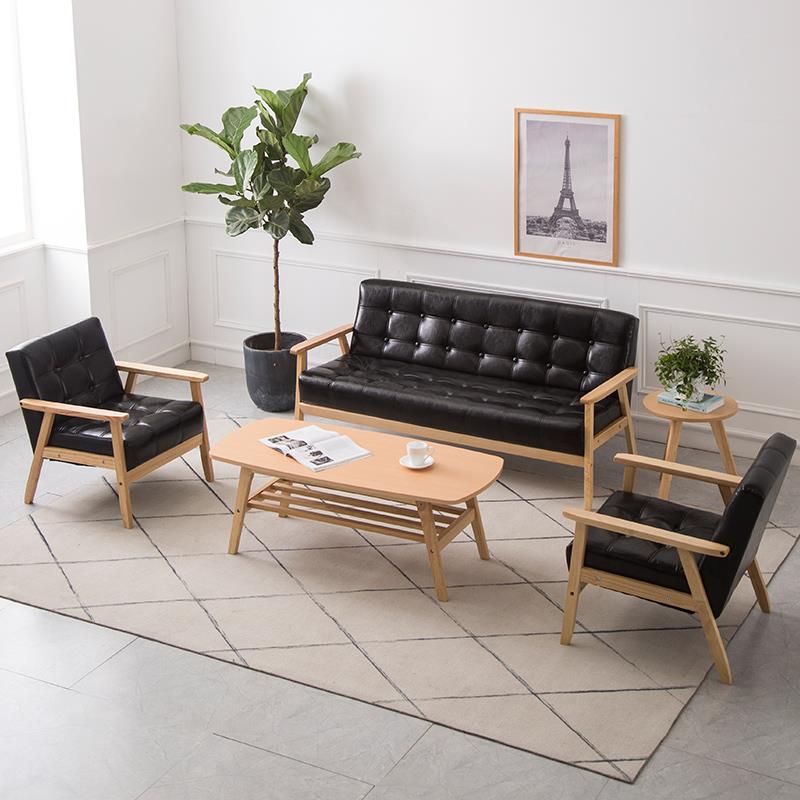 办公沙发茶几组合套装 商务简约现代小型实木接待洽谈会客皮艺三人