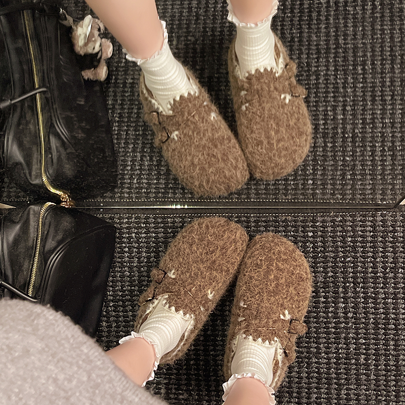 气质勃肯鞋 懒人小个子毛毛鞋 女2025冬季 内增高一脚蹬棉鞋 新款 时尚