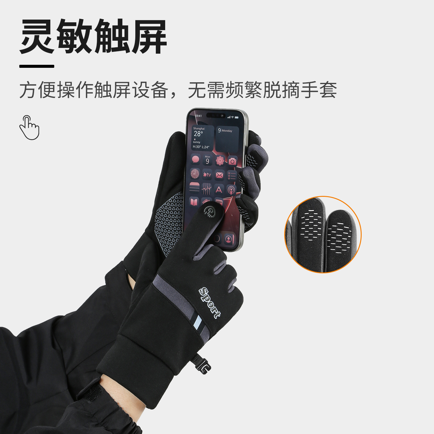 骑行手套男女冬季 加绒加厚保暖防风防水触屏翻盖二指全指户外外卖