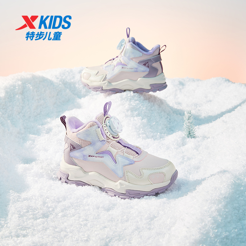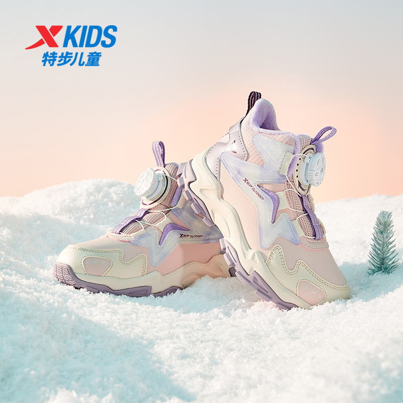 女童幼小童止滑耐磨保暖旋转纽扣棉鞋 秋冬新款 儿童运动鞋 特步童鞋
