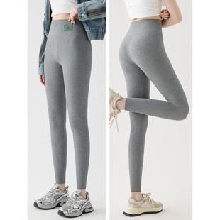 高腰大码 薄款 秋裤 修身 纯棉打底裤 显瘦灰色螺纹九分裤 女外穿春秋季