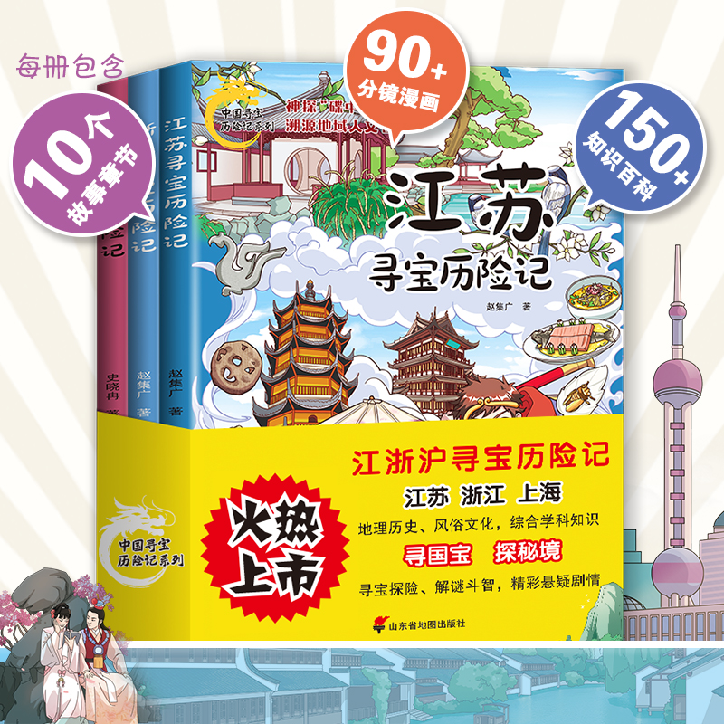 漫画版 上海 国家地理 浙江 小学生科普百科漫画历史探险中国地理知识绘本中国寻宝历险记书籍 江浙沪寻宝历险记全套3册江苏