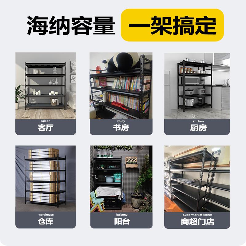 黑色仓库货架家用置物架多层阳台储物架角钢仓储超市超强承重架子
