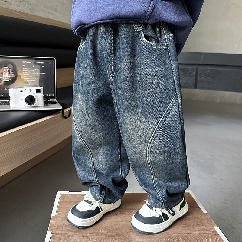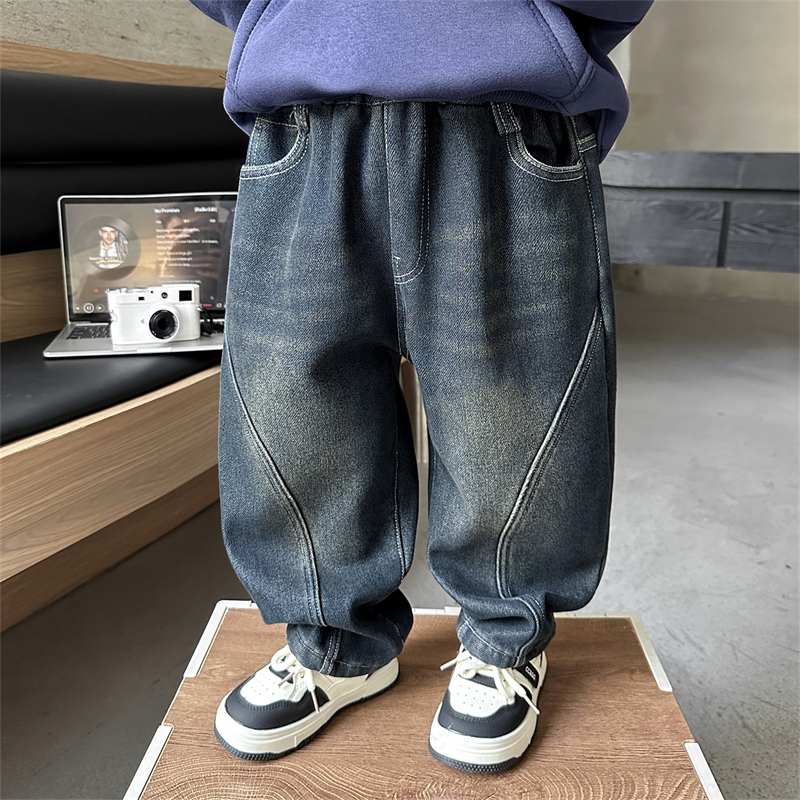 儿童男孩宝宝加厚长裤 男童加绒牛仔裤 一体绒休闲裤 冬季 子2025新款