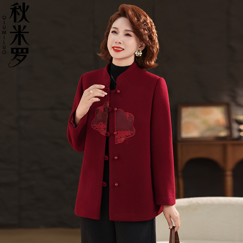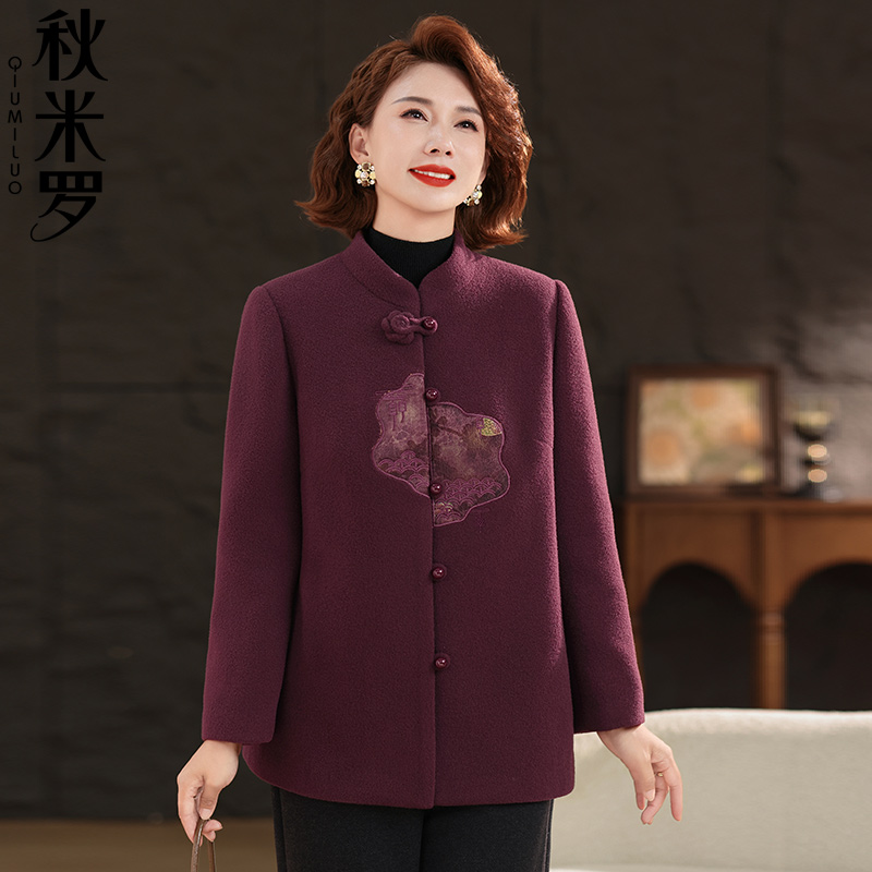加厚个子毛呢外套上衣 50多岁妈妈洋气秋季 妍影中老年女装 2025新款