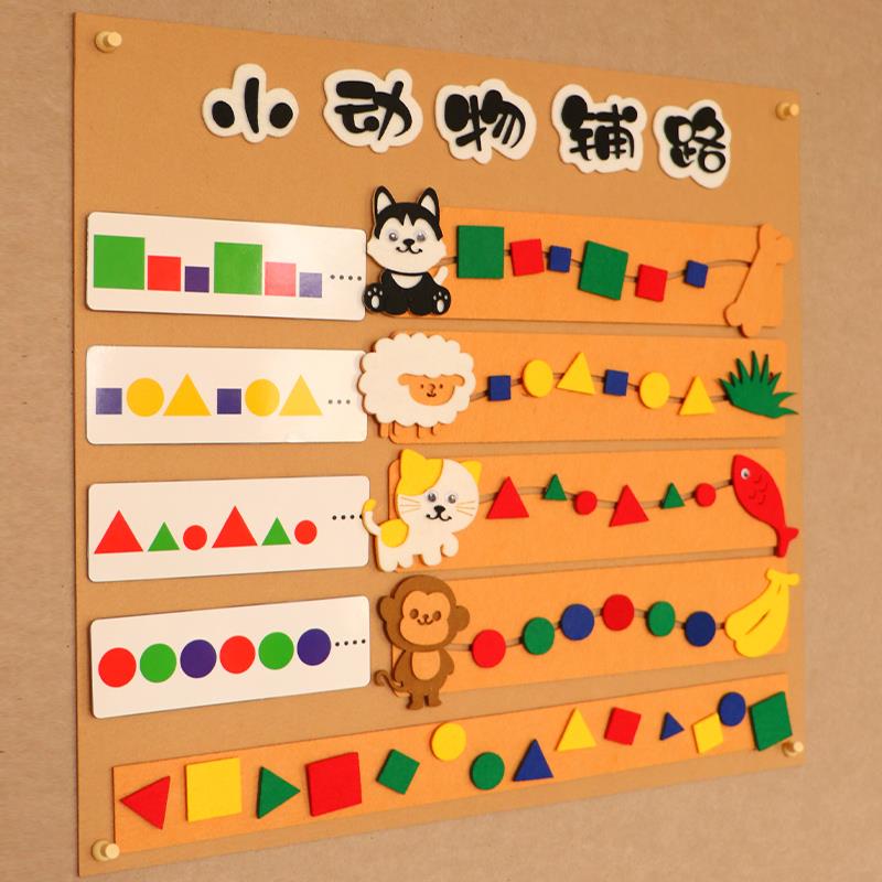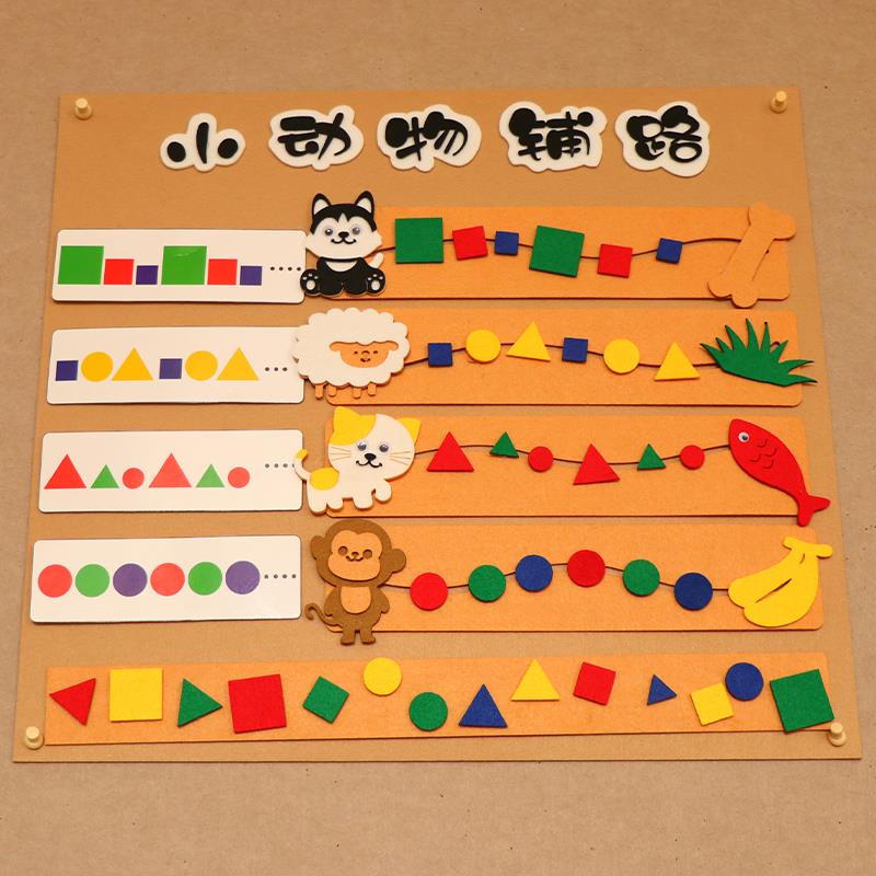 幼儿园中大班墙面布置小动物形状按规律排序益智教具铺路游戏材料