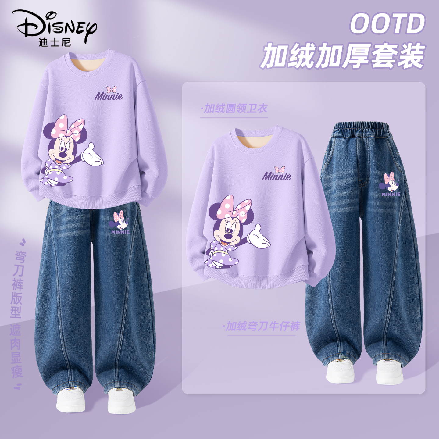 2025新款 牛仔裤 冬季 儿童冬装 加厚保暖卫衣棉裤 迪士尼女童加绒套装