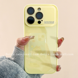 ins简约纯色大视窗带镜头膜适用苹果17Promax手机壳iphone16pro新款 15pro小众14高级感13情侣15玻璃17pro全包