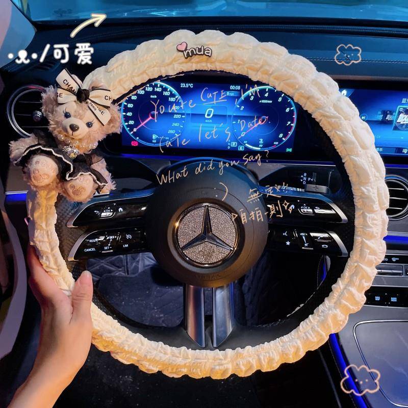 甜心雪梨玫玫夏季 泡芙方向盘套可爱女防滑吸汗汽车手把套汽车用品