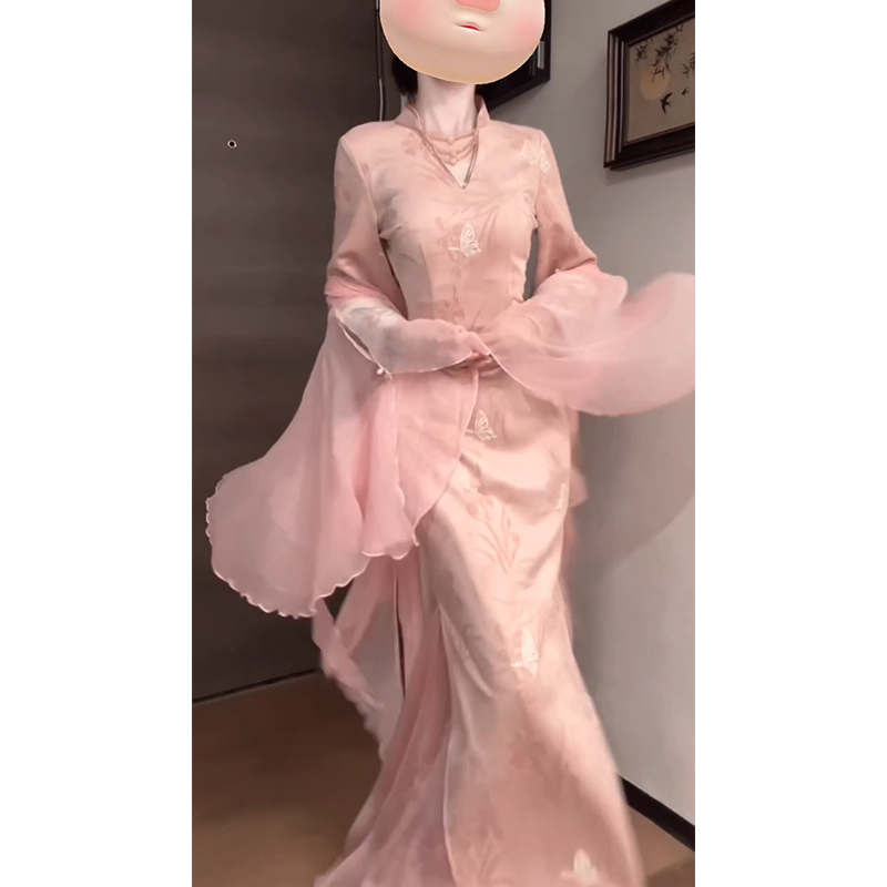 粉色改良旗袍2025复古小个子连衣裙日常可穿温柔年轻显瘦