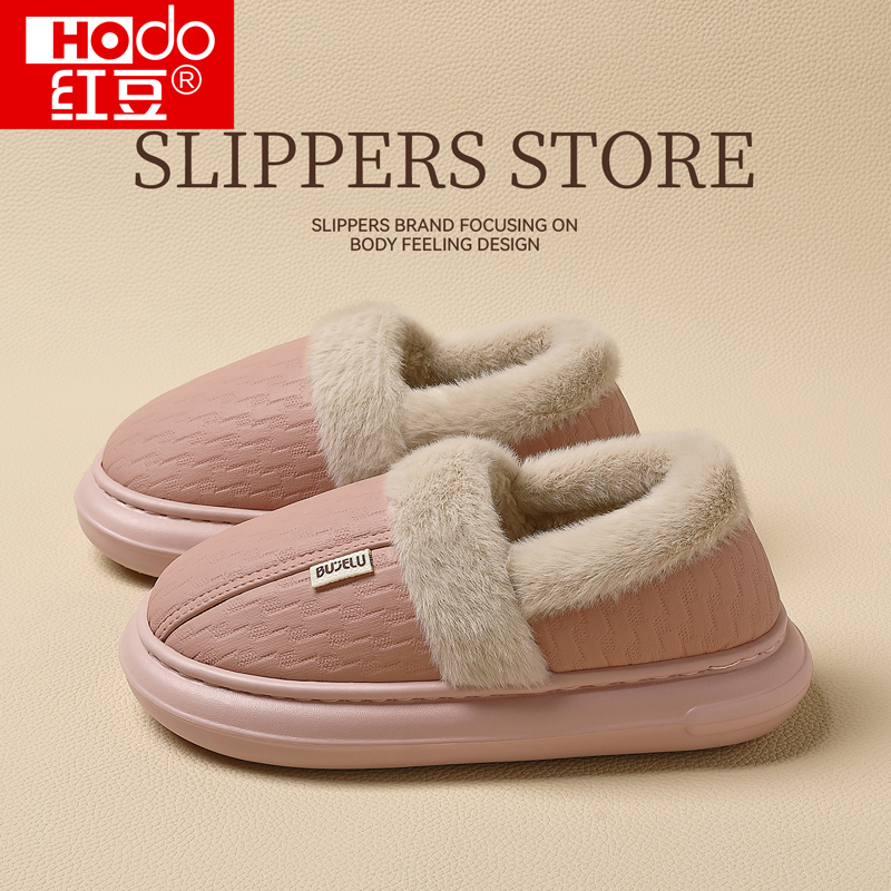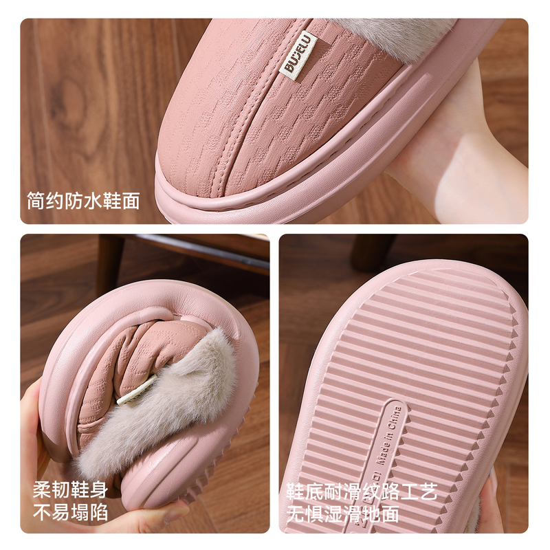 家居室内中老年加绒保暖棉鞋 包跟2025新款 冬天 女士冬季 红豆棉拖鞋