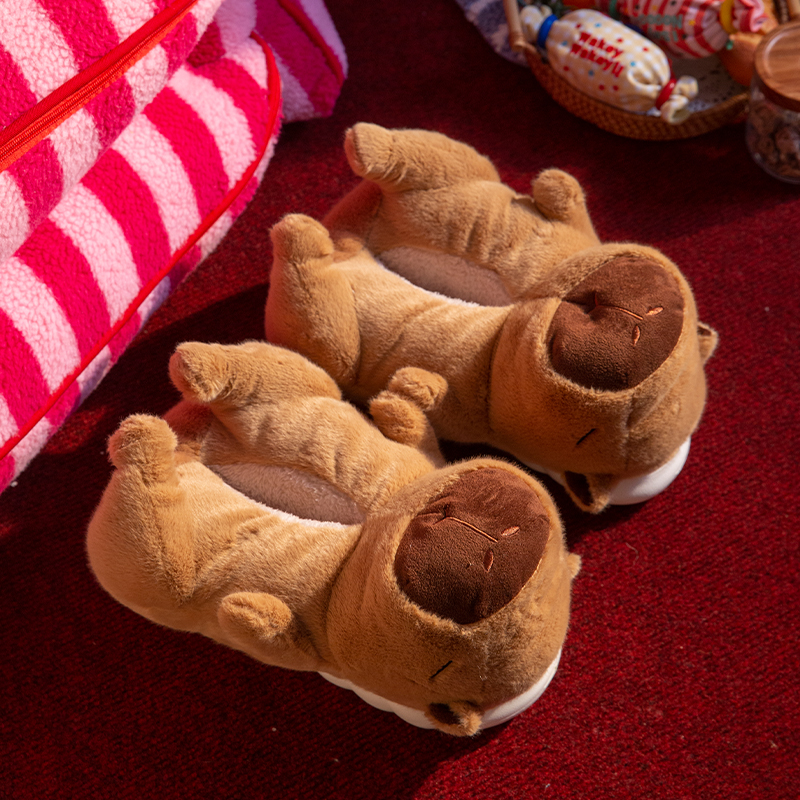 卡皮巴拉棉拖鞋 室内居家厚底包跟毛绒可爱月子保暖男冬天 女秋冬季