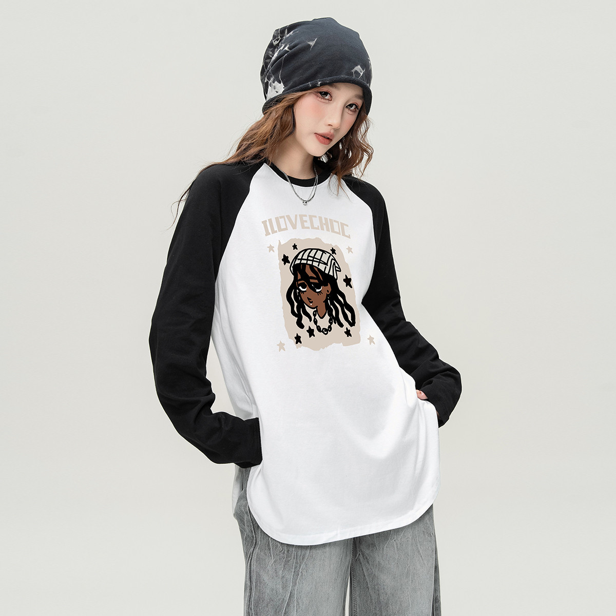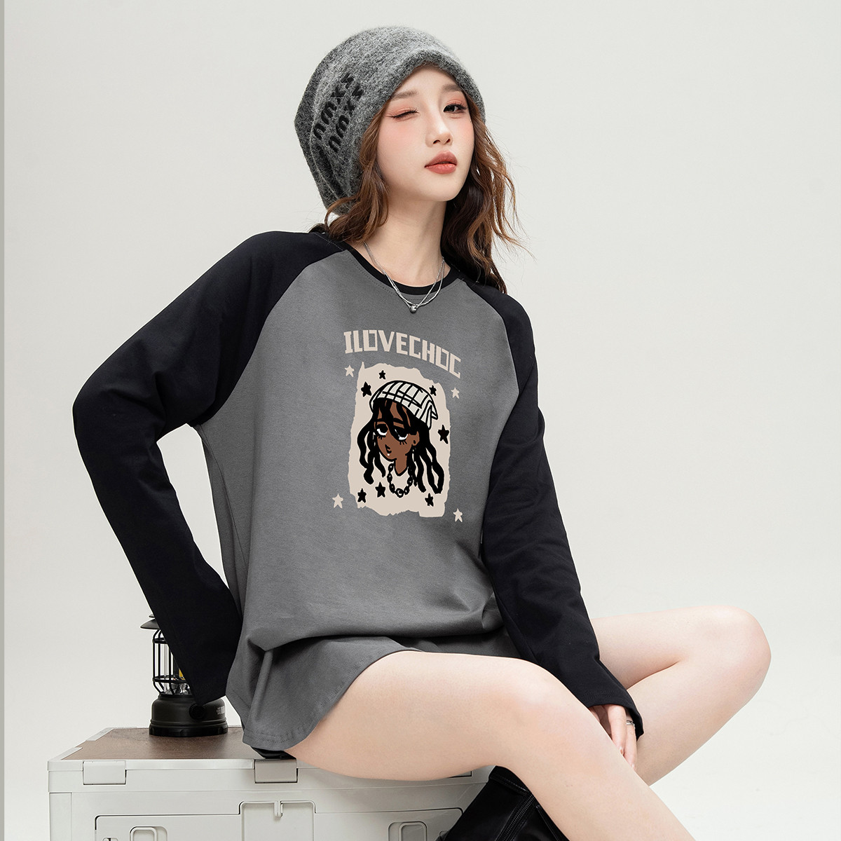 纯棉长袖 冬撞色上衣 T恤少女春秋初中高中学生外穿内搭宽松打底衫
