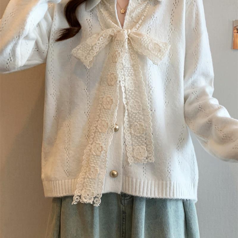 大码 女秋季 胖mm软糯慵懒高级感 蓝色独特超好看蝴蝶结针织开衫 新品