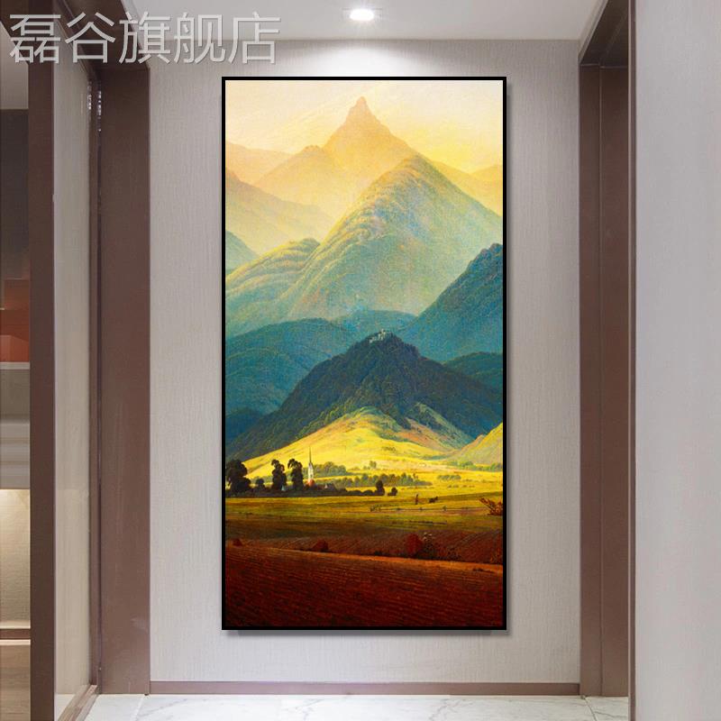 壁画山景风画竖挂画 饰水画客厅走巨廊过道美欧式 网红现代玄版 关装