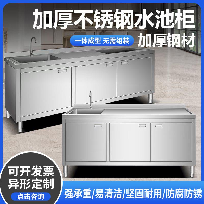 商用厨房不锈钢加厚水槽柜洗菜池灶台一体橱柜通池304定制洗手池